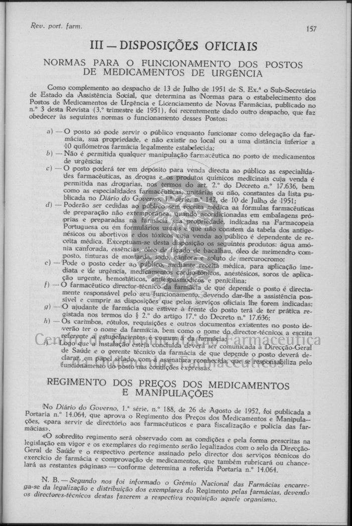 Obra Revista Portuguesa de Farmácia Cópia em JPEG Encadernação Digital [Rosto] Trabalhos Originais Revisões de Conjunto À Direcção e ao Corpo Redactorial da « Revista Portuguesa de Farmácia» [Rosto] Editorial Trabalhos Originais 54 Cromonas da Ammi Visnaga L. (LAM), A. J. C. Ralha Sobre a Preparação do Soluto Injectável de Vitamina C, A. Marques Leal, L. D. Rodrigues, S. Duarte Ferreira, J. A. Baltazar, Maria A. Andrade e Elisa Freitas Convite [Rosto] Trabalhos Originais 121 O P. A. S. Sódico como Estabilizante dos Injectáveis de Riboflavina, Aluísio Marques Leal, Maria Amélia Andrade e Maria de Lourdes Alves Nota Prévia sobre a Acção Circulatoria dos Alcaloides do Ptaeroxylon Obliquum (Thumb.) RADLK, A. C. Correia da Silva e L. Nogueira Prista [Rosto] Trabalhos Originais 161 Contribuição para a Determinação Química, Qualitativa e Quantitativa, do Brometo de Metantelina, J. A. de Almeida Baltazar e A. Lupi Nogueira Um Novo Método de Dosagem Fotocolorimétrica do P-Amino-Salicilato de Sódio, L. Duarte Rodrigues e R. Duarte Rodrigues Revisões de Conjunto Resumos Cooperam na obra desta Revista... [Contracapa] | Encadernação Digital > Secção Profissional > 157 |